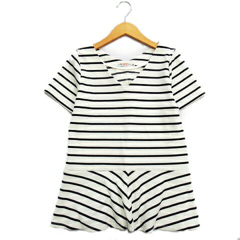 【中古】ビームスハート BEAMS HEART ボーダー Vネック 半袖 カットソー ストレッチ F ネイビー オフホワイト/21 レディース 【ベクトル 古着】 200213 ベクトル マークスラッシュ